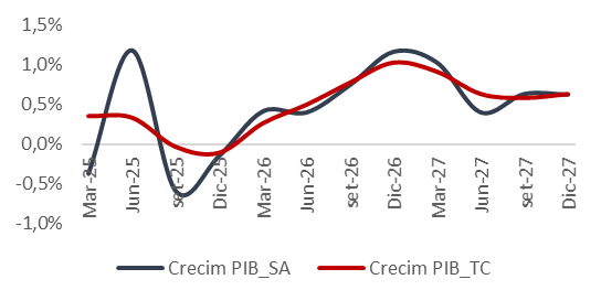 Más allá de la evolución de la actividad económica a nivel agregado, a partir de la información más reciente es posible analizar las señales que brindan indicadores como la serie desestacionalizada y el componente tendencia-ciclo. Al considerar la serie desestacionalizada, que excluye las oscilaciones de carácter estacional, en los cuatro trimestres, se puede esperar un crecimiento moderado en el presente año. Si se considera la señal más firme del indicador, el denominado componente de tendencia-ciclo, se observa que, tras una recuperación inicial en el ritmo de crecimiento durante 2026, la evolución de la tendencia de la actividad económica se estabilizaría en 2027.
